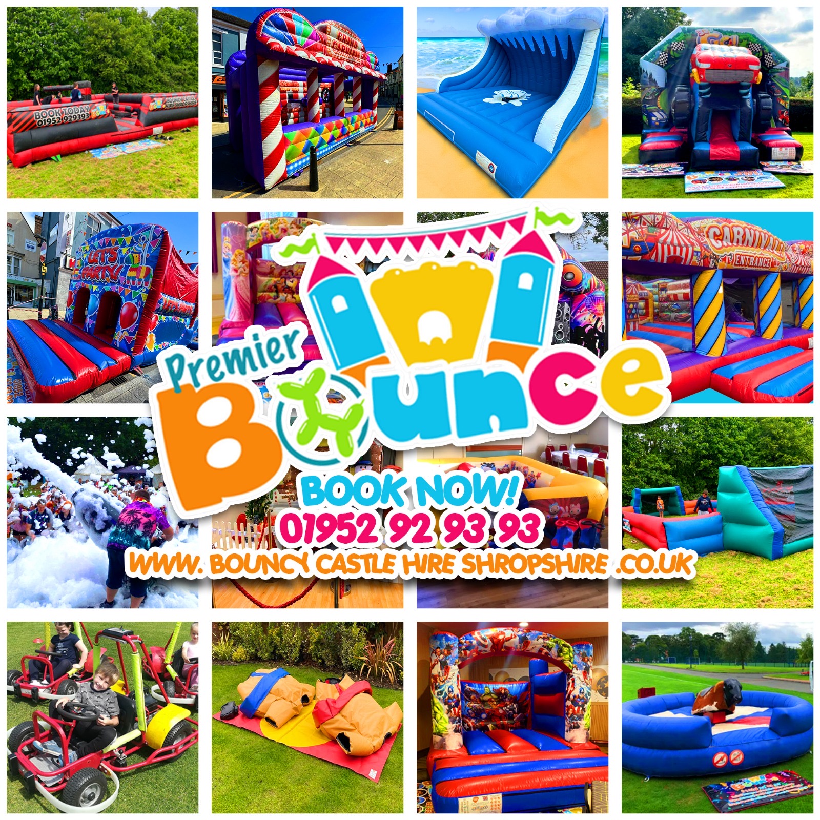 Premier Bounce is Shropshire's Largest Bouncy Castle Hirer who have vast experience of the Inflatable & Bouncy Castle Hire Industry. We pride ourselves with being a reliable trustworthy company who cater to your every Party Planning needs. We have a wealth of knowledge & experience with all aspects of the Inflatable world! We pride ourselves in offering a professional & reliable service as well as a good solid robust inflatable which are safety tested to the highest of standards annually. We provide a top notch Service with best possible prices to cater to all budgets. We have a vast selection of Inflatables to Hire from Bouncy Castles to Inflatables games from Bungee Runs, Axe Throwing & Carnival FunFair Rides. Most of all, we want you to have plenty of fun!!
