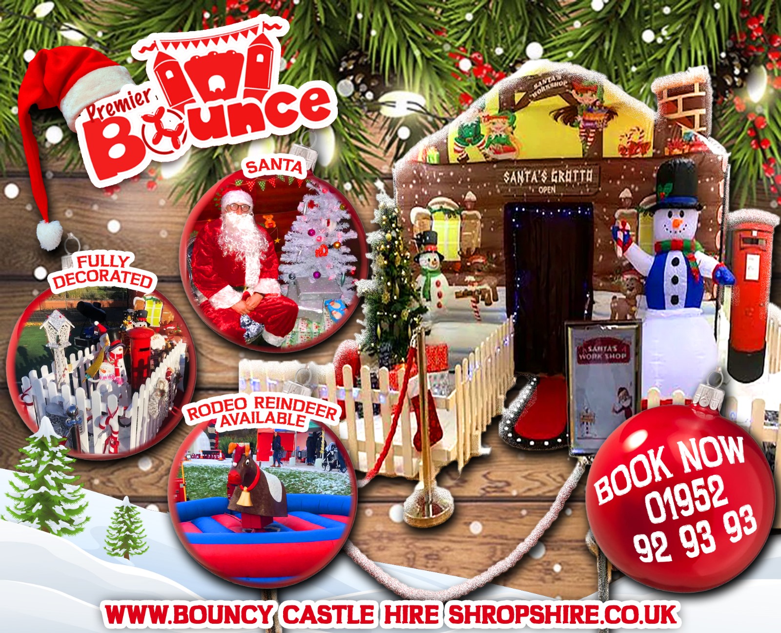 Premier Bounce is Telford, Shropshire's biggest & best Inflatable Santa's Grotto Hire Specialists who year on year provide top quality service to all our customers. We are a Professional, reliable & trustworthy company who deliver our Santa's Grottos across the Shropshire region to Local Charities, Council Authorities & small and large Private Christmas functions.