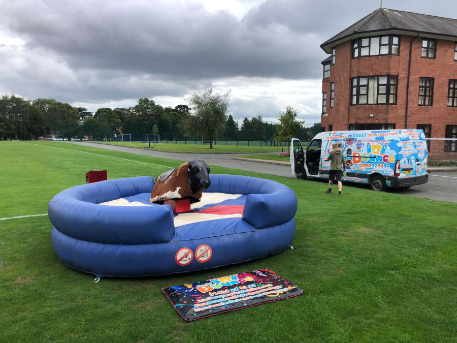 Mechanical Rodeo Bull for hire in Telford Shropshire is ideal all age groups. A fantastic product alongside any bouncy castle and ties in well with any of our wedding Bouncy castles and accessories. Suitable for indoor as well as outdoors