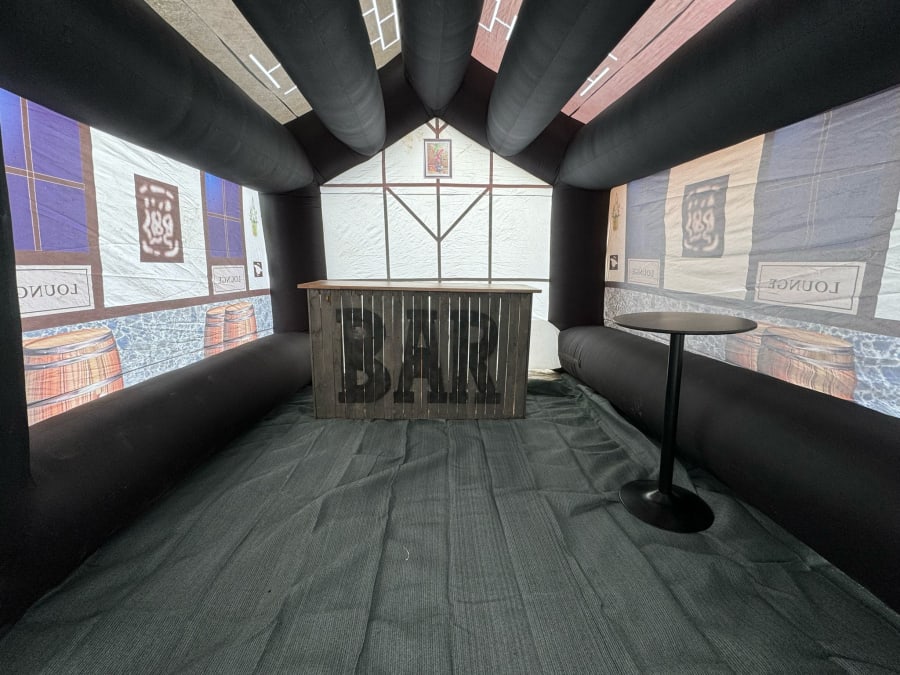 This marquee inflatable Pub will hold approx 20 people standing (depending on distances) and can be arranged to seat multiple smaller tables. Which can be hired separately. If Staff are required then please ask for further details.