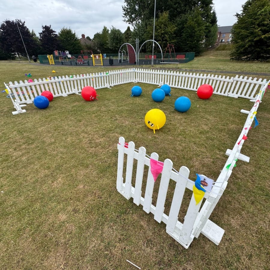 Space Hopper Arena Now available to hire with Premier Bounce who cover Telford and Surrounding areas in Shropshire but please see our delivery radius to check if we cover your area. Large Space Hopper arena with space hoppers and bunting decoration a perfect item for summer fun days, birthday parties and events as its something that everyone can enjoy.