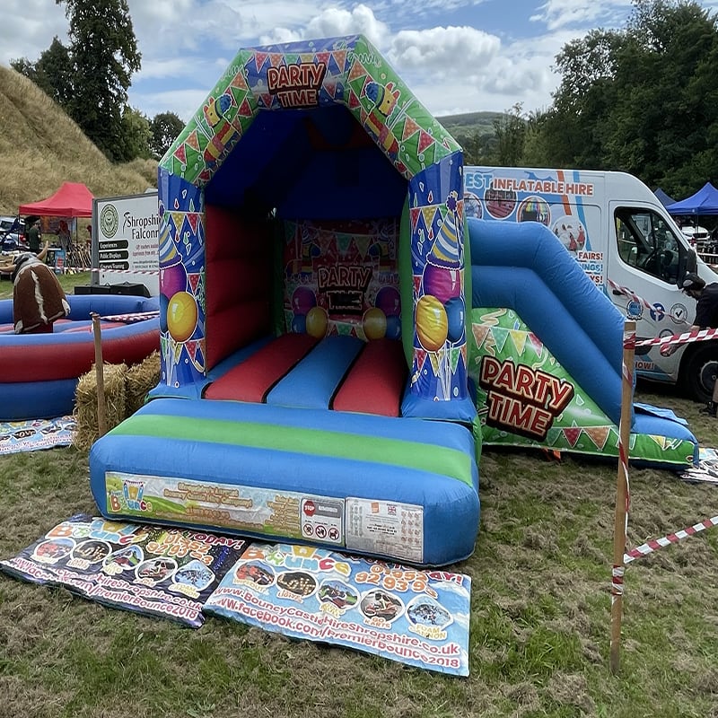 Party Time Bouncy Castle with Side Slide for Hire available across Shropshire & surrounding areas at affordable prices. This stylish extra Bouncy Party Time Combination side slide Bouncy Castle really looks the part at any Event or Occasion. If you are looking to Hire a Bouncy Castle for someone's Birthday or Back Garden Party then look no further choose one of our wide selection of Inflatables from one of Telfords largest Bouncy Castle Hirers who deliver & install daily across Shropshire. This product features Built in Sun / Shower Cover & Slide perfect for any occasion. - had enough of just Bouncing? Well you won't get bored with this Ultra Bouncy Slide combo guaranteed to keep children entertained for hours. Available to rent across Shropshire & surrounding areas from Whitchurch, Bridgnorth, Shrewsbury & Telford! Book today!