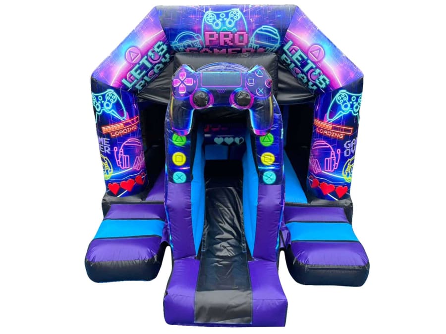 Hire our 3D Gamers themed Bouncy Castle with front facing Slide which is a great addition to any Birthday Party or Social Gathering. What Child doesn't like Gaming these days? Well you can't go wrong with our Gamers themed Bouncy Castle with built in Front Facing Slide is a real crowd pleaser for children of all ages! This Unisex Gamers Inflatable available to Rent across Shropshire includes a fully enclosed design with netted sides for ease of supervision, Vibrant digitally printed artwork with 3D Gaming Controller really setting scene for a very special Birthday Party or occasion!