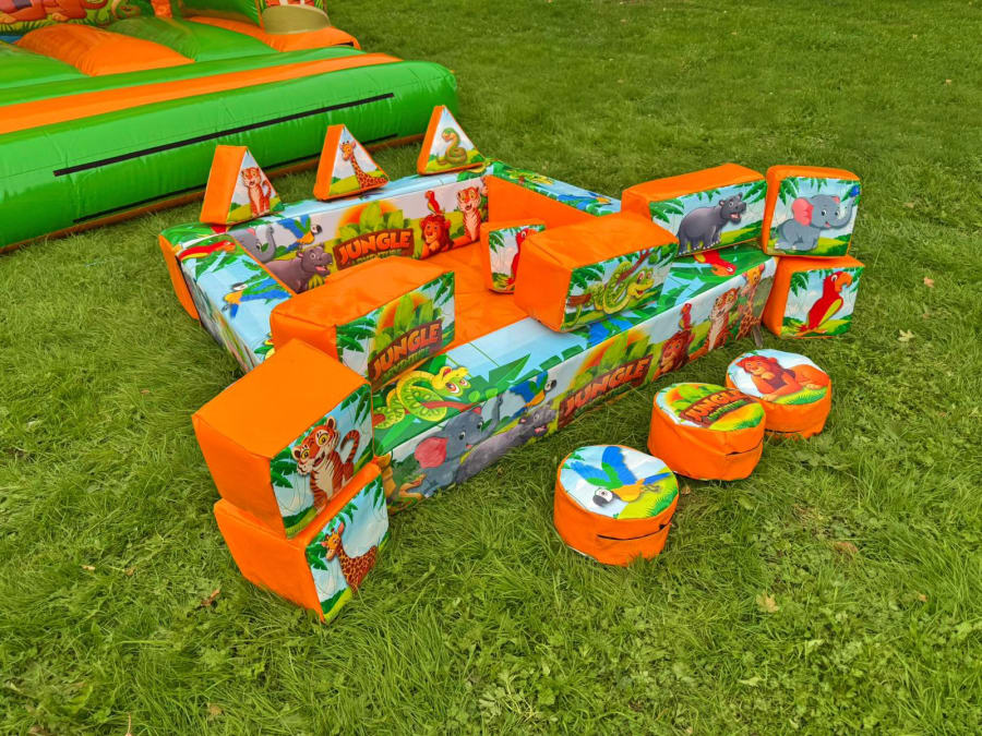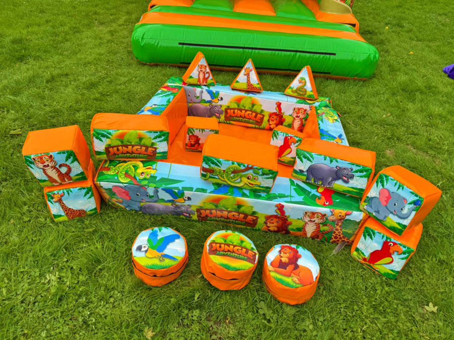 Premier Bounce offer a selection of foam filled Soft Play Shapes & Ball Ponds to choose from. Our Jungle Soft Play Sets are ideal for small children such as Toddlers who love to be included with a Party or Event. A fantastic additional hire alongside a Bouncy Castle for older children. Smaller children tend to love our Soft Play Sets & Interact with our colourful Foam Building Blocks & Ball Ponds. Includes digitally printed artwork & Soft but robust texture. Available to Hire across Telford Shropshire.