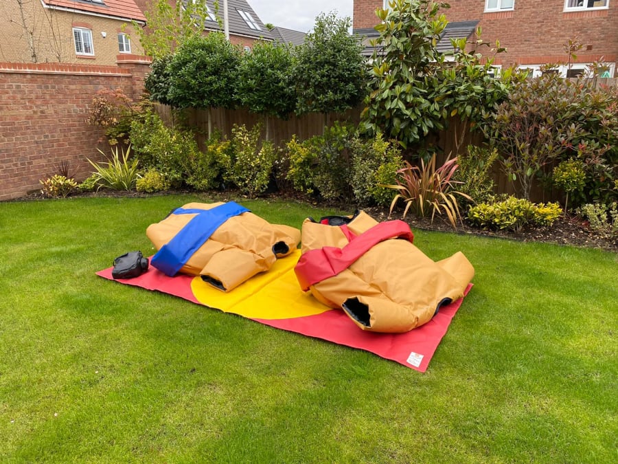 Commercial Family Sumo Set available to hire across Telford and Shropshire regions such as Shifnal, Newport, Albrighton, Gnosall, Wem, Shawbury etc. These extra padded sumo sets are great fun for all users (adults included) the aim of the game is to push your opponent of the battle mat to win - this might sound easy but with our Padded sumo suits on its harder than it sounds and its also good fun for spectators. These Sumo Suits are a real crowd pleaser with fun in mind for the whole family and suitable for all occasions large family BBQ's, Birthday parties, Summer fun days, pubs etc.