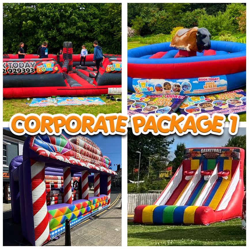 Family Fun Day Bouncy Castle Packages for Hire across Telford Shropshire. We have a variety of Events packages to choose from which consist of multiple Bouncy Castles & Inflatable Games which are all available to Rent at fantastic prices with discounts already applied saving you ££'s. Book & Hire today one of our collection of Fun Day Inflatable packages which are ideal for School Fetes, Family Fun Days, Summer Fundays, Corporate Occasions as well as Team Building exercises! Premier Bounce is located in Telford & offer a vast amount of Inflatable Games, Funfair Rides, Bouncy Castles & Mechanical Rides (plus so many more) across Shropshire!
